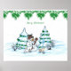 Frohe Weihnachten! Schneemann mit Katze und Welpe Poster