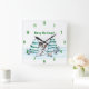Frohe Weihnachten! Schneemann mit Katze und Welpe Quadratische Wanduhr