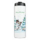Frohe Weihnachten! Schneemann mit Katze und Welpe Thermosbecher