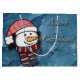 Ein schöner kleiner Schneemann mit weißer und roter Strickkleidung auf einem blauen Papier. Ideal, um den Kleinen frohe Weihnachten zu wünschen.