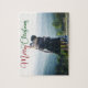 Elegantes Weihnachts-Foto-Puzzle mit wunderschöner kursiver Typografie in Rot und Grün. Dieses moderne Familienfoto mit einer prächtigen Schrift und Ihrem Namen in Weiß über das komplette Blutbild für ein personalisiertes Urlaubserlebnis.