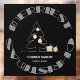 Auf diesem schwarzen quadratischen Fensterheber ist das einfachste weiße Weihnachtsskript zu sehen. Wählen Sie JEDE GRÖSSE und *Klammern auf der Vorder- (innen) oder Rückseite (außen) des Fensters. (Die angezeigte Größe beträgt 24" x 24", kann aber größer oder kleiner sein.)