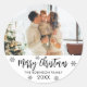Modernes Script Schwarz und Weiß "Frohe Weihnachten" Kalligrafie Script Familie Weihnachtsfeiertag Foto Sticker. Niedliche Schneeflocken (Schneeflocken) im Hintergrund, Familienname und Jahr. Ideal zum Verschicken von Accessoires Umschlag Aufkleber und Geschenkklammer.