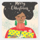Frohe Weihnachten, schwarze Frau, helles Pullover Quadratischer Aufkleber
