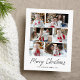 Moderne Urlaubspostkarte mit 6 Ihrer Fotos in Collage. "Frohe Weihnachten" wird in einem handgeschriebenen schwarzen Skript mit Ihrem Familiennamen und dem unten abgebildeten Jahr angezeigt. Die Multi-Foto Ferienpostkarte kehrt um Ihre Rücksendeadresse und individuelle Nachricht in schwarzer Schrift anzuzeigen.