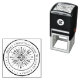 Vintage Briefmarke aus Gummi für Winterurlaub Geschenke. Weihnachtssalon mit Schabby und Grunge Schneeflocke, asymmetrischer Kreis und Text "Frohe Weihnachten". Füge Deinen Namen hinzu.