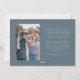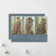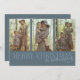 Moderne und festliche Urlaubskarte für Familien mit einem Text, der "MERRY CHRISTMAS" mit einer Familiensignatur im Skript-Schriftart überlappt. Es gibt 3 Foto auf der Vorderseite und 1 auf der Rückseite. Der Hintergrund ist blau.