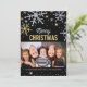 Festliche Feiertage Foto Grußkarte Design funkelnde Silber-und Goldschneeflocken und "Frohe Weihnachten" Formulierung mit individuellem Text und ein Bild, das personalisiert sein kann. Holiday Snowflake Rahmen und Skript haben einen texturierten Glitzer Aussehen auf einem schwarzen Hintergrund.