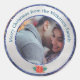 Dieses elegante, individuell gestaltete Ferienaufkleber-Etikett verfügt über ein Musterfoto in der Mitte, das Sie durch ein Bild Ihrer eigenen Familie oder eines anderen individuellen Bildes ersetzen können. Ein Beispiel für Weihnachtsgrüße und Familienname werden oben gedruckt. Ein kreisförmiger Rahmen mit einem funkelnd und glänzenden Imitat, blauer Glitzer und Silberfolienmitte. Eine festliche rote Poinsettia wird unten platziert.