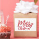 Frohe Weihnachten Simple Girly Red Script Rechteckiger Aufkleber