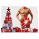 Frohe Weihnachten SlipperyJoe Rot Silber Geschenkboxen Bowling muskulösen männlichen Brust-Shirllose Mann Feiertage künstlerische Baum festliche Hintergrund sechs Packungen Bauch Gay Pride Geschenke LGBTQIA fett einzigartiger Feiertag Feier Verschiedene Geschenke verpackt Geschenke