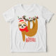 Frohe Weihnachten Sloth | Shirt der Tri-Blend Girls Holidays Dieses Design besticht durch einen festlichen Faulpelz, der von einem Baumzweig mit dem modernen Text "Frohe Weihnachten", der in Rot-Typografie beliebt ist, hängt. Ideal für Weihnachtsgeschenke und Weihnachts- und Feiertagsfeiern. Erstellt von Evco Holidays www.zazzle.com/store/evcoholidays
