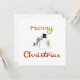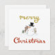 "Frohe Weihnachten" in Imitaten goldene und rote Schrift mit der Abbildung eines Schneemannszentrums.