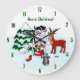 Frohe Weihnachten! Snowman mit Freunden Große Wanduhr