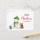 Niedliche frohe Weihnachts-Postkarte mit einer Illustration eines niedlichen Schneemanns, umgeben von einigen Tierfreunden. Personalisieren Sie den Text, um Ihre eigene herzliche Nachricht hinzuzufügen und senden Sie an Ihre Lieben in dieser kommenden Feriensaison. Illustriert und entworfen von Patricia Alvarez.
