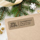 Moderne Urlaubsstipps mit schicker Weihnachtsschrift auf einem Imitat Kraftpapier Hintergrund, um sich mit unserer Holly und Pine Kollektion abzustimmen. Personalisieren Sie es mit Ihrem Familiennamen und Ihrer Rücksendeadresse. Klicken Sie auf Anpassen, um ein Foto hinzuzufügen, die Hintergrundfarbe zu ändern oder die Textfarben und Schriftart zu bearbeiten, um ein einzigartiges Design zu erstellen.