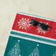 Fröhliche Weihnachtsanschauung mit Weihnachtsbaum und Schneeflocken-Dekoration auf rot, weiß, blau und türkis gestreiftem Hintergrund