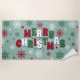 Fröhliche Weihnachts farbenfrohe Textgestaltung mit Schneeflocken Dekoration auf grünem Hintergrund