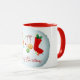 Frohe Weihnachten mit Weihnachtssocken und Tannen, digitale Kunst