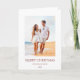 Die Urlaubskarte des Tropical Beach mit einem Thema für die Küste und roter Typografie. Mit der anpassbaren Rot-Schrift können Sie Ihren eigenen Text hinzufügen. Sie ändern auch das Foto mit Ihren eigenen, um etwas Besonderes zu machen. Ideal, um Liebenden ein frohes Weihnachtsfest von Ihrem Urlaubsziel aus zu wünschen.