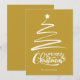 Frohe Weihnachten im Skriptstil Schriftart mit einer Kontur von Weihnachtsbaum und Stern auf Top-Design. Diese goldene Hintergrundfarbe Weihnachtskarte ist so konzipiert, dass Sie die Farbe des Hintergrunds ändern und auch Ihren Familiennamen eingeben können.