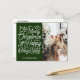 Freuen Sie sich auf Liebe und Freude in dieser Urlaubssaison mit dieser modernen und eleganten Postkarte. Auf der einen Seite steht dekorative Schrift mit dem Titel "Frohe Weihnachten und Glück im neuen Jahr", auf der anderen Seite Ihr Familienname und das laufende Jahr auf einem schönen grünen Kiefernwald. Auf der anderen Seite können Sie die Postkarte mit Ihrem Foto personalisieren. Verpassen Sie nicht die Gelegenheit, Ihre Liebe mit Familie und Freunden zu teilen. Nimm heute deine Postkarte!
