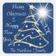 Frohe Weihnachten und Glück Neujahr Tree Blue Navy Quadratischer Aufkleber