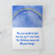 Die fröhliche Weihnachts- und Silvesterkarte des fliegenden Rentiers mit einem fröhlichen, fröhlichen, fliegenden Rentier, der gegen einen tiefen blauen Himmel und zwei puffige Wolken abgebildet ist. Oben verkündet es: "Frohe Weihnachten! Im Innern zeigt sich ein blauer Aquarellhimmel mit einem Regenbogen, der darüber verteilt ist. Unten im Vers steht: "Mögen deine Geister hoch sein und mögen dein Herz in dieser Weihnachtszeit und das ganze Jahr hindurch füllen." Sie können die Bilder anpassen und den Text in dieser Weihnachtskarte personalisieren.