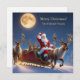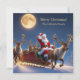Eine personalisierte Weihnachtskarte mit dem Weihnachtsmann, der mit seinem Rentier im Schlitten reitet.
