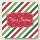 Fröhliche Weihnachtsanschauung mit Text- und Schneeflocken-Design auf rot, weiß und grün gestreiften Hintergrund