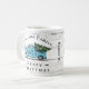 Diese individuelle Tasse mit einem Vintagen, hellblauen LKW, der einen Weihnachtsbaum im modernen Bauernstil mit einem rustikalen, weißen Holzbrett trägt, der im Hintergrund strukturiert ist, kann mit einem Familiennamen, kurzer "Frohe Weihnachten"-Nachricht, einem Monogramm an der LKW-Türe und einem Namen personalisiert werden. Macht ein großartiges personalisiertes kleine Geschenk zu Weihnachten. Entworfen von © Tim Coffey