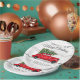 Feiern Sie Weihnachten und die Feiertage mit Tellern aus Papier, die mit diesem roten Oldtimer-Wagen mit einem grünen Weihnachtsbaum auf einem rustikalen weißen Holzbrett, texturierten Hintergrund und schwarzen Schrift und handgeschriebenen Stil Typografie koordiniert werden. Personalisieren Sie sie mit Ihrem Namen und "Frohe Weihnachten" oder Wörtern Ihrer Wahl. Entworfen von © Tim Coffey.