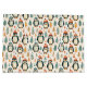 Eine Weihnachtsgeschenktüte mit niedlichen Kalkpinguinen und Kiefernbäumen in Ziegelrot, Gold und Türkis.
