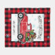 Diese rustikale Urlaubsdecke mit einem Vintagen roten LKW gefüllt Willkommensgeschenke, einem Sprinkling von Schneeflocken und einem roten Büffel karierte Grenze. Im obigen Text steht "Frohe Weihnachten" und Ihr Familienname unten, um zu personalisieren.