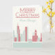 Grüße von Chicago! Ein Gruß der frohen Weihnachten von der windigen Stadt mit einer Skylineansicht und einem Schneefallen.