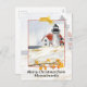 Frohe Weihnachtsgrüße von Massachusetts mit einem Blick inspiriert durch das Race Point Leuchtturm in Provincetown mit Schnee bedecken die Strandgräser und einem wintergrauen Ton zum Ozean mit einem Zweig von goldenen Winterbeeren und der Staat Form handgemalt mit Aquarell. Eine gute Art, Urlaubswünsche an Freunde, Familie, Brieffreunde, Kunden oder Kunden zu senden.