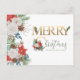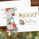 Elegante Holiday bewegende Postkarte mit dekorativer Typografie und festlichen Blumenrahmen. Das Design umfasst Poinsettia, Kiefernzapfen, weiße Rosen, Winterbeeren, Baumwolle, Eukalyptus und Tannenfrüchte. Der Wortlaut lautet "fröhliche Weihnachten aus unserer neuen Zuhause" und Sie können dies ändern, um "von meiner neuen Zuhause" zu lesen, wenn erforderlich. Frohe Weihnachten wird mit Imitaten goldene Typografie und grüne Handschrift geschrieben. Die Vorlage ist für Sie Set, um Ihre personalisierte Nachricht mit Ihrer neuen Adresse auf der Rückseite hinzuzufügen. Ein traditionelles und festliches Design, um jedem lassen, wissen Ihre neue Adresse.