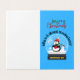 Eine Weihnachtsschneekugel und Pinguin im Schnee. Eine lustige Frage, die der Pinguin frage: "Warum schneit es die ganze Zeit", in der Schneewelt.