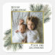 Frohe Weihnachten Wasserfarben Pine mit Foto Quadratischer Aufkleber