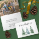 Diese Urlaubskarte ist einfach, rustikal und festlich. Es ist minimalistisch mit drei schneebedeckten Aquarellkiefern und eleganter Schriftzeichen-Kalligraphie, die Frohe Weihnachten liest! Das Innere hat Platz für Ihr Foto oder Bild, zusammen mit einer Notiz und Unterschrift. Wunderschöne Art, die Jahresgrüße zu senden!