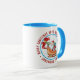 Hier ist ein schönes Weihnachts-Logo-Design, das sich perfekt für die Ferienzeit eignet. Das Bild zeigt den Weihnachtsmann in seinem Schlitten mit einem Weihnachtsbaum und Urlaubsgeschenken. Der Griff und das Innere der Tasse sind winterblau, um dem Design zu entsprechen>