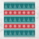 Fröhliche Weihnachtsanschauung mit Weihnachtsbaum und Schneeflocken-Dekoration auf rot, weiß, blau und türkis gestreiftem Hintergrund