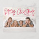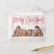 Niedliches Foto Postkarte mit "Frohe Weihnachten" oben auf der Karte in einem roten handgeschriebenen Skript. Personalisieren Sie die skurrile Weihnachtspostkarte mit Ihrem horizontalen Foto und Familiennamen. Die Postkarte kehrt um, um Ihre Rücksendeadresse, zusätzliches Foto und benutzerdefinierte Nachricht anzuzeigen.