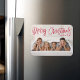 Niedlicher Feiertagsmagnet mit "Frohe Weihnachten" oben auf dem Design in einem roten, handgeschriebenen Drehbuch dargestellt. Personalisieren Sie den skurrilen Weihnachtsmagneten mit Ihrem horizontalen Foto und Familiennamen.