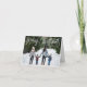 Niedliche Urlaubskarte mit "Frohe Weihnachten" oben auf der Karte in einer weißen handgeschriebenen Schrift. Personalisieren Sie die skurrile Weihnachtskarte mit Ihrem horizontalen Foto und Familiennamen auf der Vorderseite. Die Innenseite der Karte verfügt über ein zusätzliches Foto mit Platz für Ihre benutzerdefinierte Nachricht in roter Schrift. Auf der Rückseite der Karte wird ein rotes und weißes Schneeflockenmuster angezeigt.
