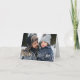 Niedliche Urlaubskarte mit "Frohe Weihnachten" am Ende des Designs in einer weißen handgeschriebenen Schrift. Personalisieren Sie die skurrile Weihnachtskarte mit Ihrem horizontalen Foto und Familiennamen auf der Vorderseite. Die Innenseite der Karte verfügt über ein zusätzliches Foto mit Platz für Ihre benutzerdefinierte Nachricht in roter Schrift. Auf der Rückseite der Karte wird ein rotes und weißes Schneeflockenmuster angezeigt.