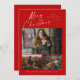 Frohe Weihnachts Weißschrift 3 Foto Collage mit eleganter handgeschriebener Typografie und 3 Fotos auf der Vorderseite. Die Rückseite hat ein Single-Foto. Klicken Sie auf die Schaltfläche Bearbeiten, um dieses Design anzupassen.