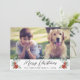 Fröhliche Weihnachts-Foto-Urlaubskarte mit Ihrem Foto, "Frohe Weihnachten" in einem zeitgenössischen Drehbuch, Ihr Familienname in schlichter moderner Typografie und Aquarellbouquets von Poinsettia Blume und Wintergrün. Fügen Sie 3 zusätzliche Fotos und Ihre Vornamen auf der Rückseite hinzu.