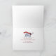 Festlicher Winter Eisbär und Roter Kardinal Weihnachtsfeiertag Grußkarte. Das Design zeigt unseren handbemalten Winterpolarbär in Aquarellfarbe mit einem rot gestreiften Winterschal und einem süßen kleinen, roten Kardinal, der auf der Nase des Eisbären steht. Ein elegantes Imitat mit Goldfolienskripten "Frohe Weihnachten" fließt über den roten Schal. Einfach fallende weiße Schneebälle kaskadierten nach unten. Im Inneren finden Sie die Kunstwerke Eisbär und Kardinal und personalisiert mit einem besonderen Urlaubssegment. Alle Illustrationen sind handgezeichnet Originalwerke von Moodthology.