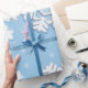 Weihnachts-Wrapping Paper mit Weihnachtsschneeflocken. Frohe Weihnachten und Neujahr schöne Wrapping Paper für schöne Weihnachtsgeschenke. XMAS Wrapping Paper dekoriert mit Weihnachtsmagie Symbole, Winterschneeflocken, Urlaubsgeschenke Elemente Muster, Schneemann, Weihnachtsbaum, Weihnachtsball, Schneeflocken und festliche Figuren. Originelles, trendiges Grafikdesign. Geburtstag, Jahrestag, Hochzeitstag. Babyparty.